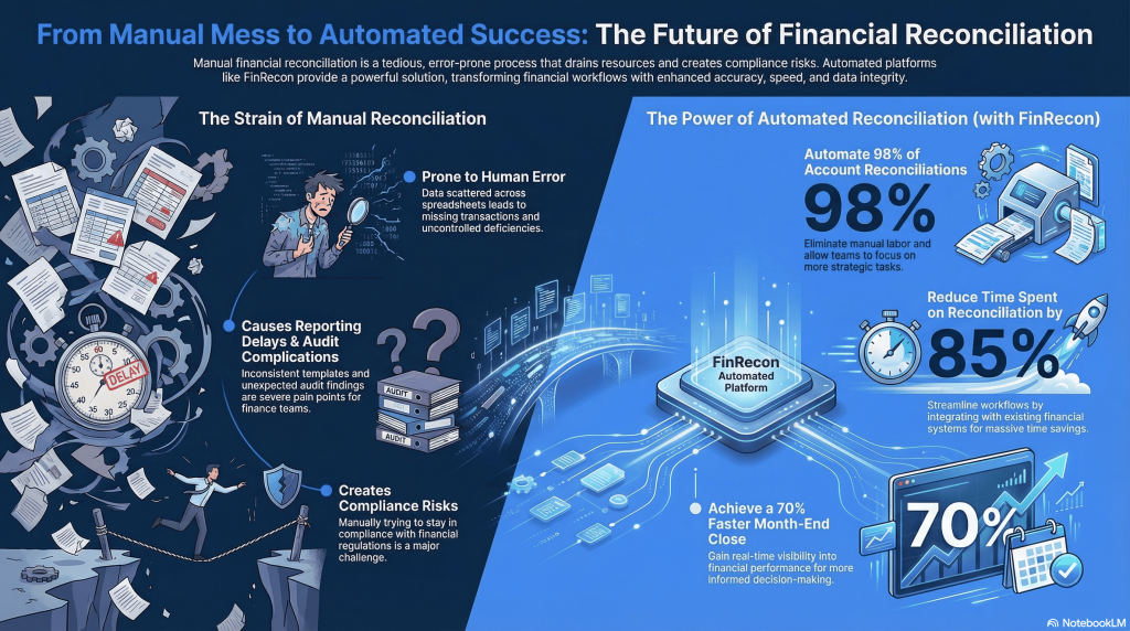 Automated reconciliation with FinRecon is required to maintain financial integrity and make informed decisions. Considering the struggles and complexity of financial data, adapting this revolutionary platform is a wise decision.